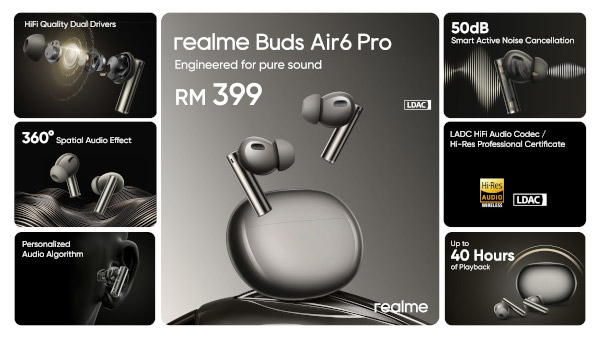 | realme Buds Air6 Pro | RM399 | realme Brand Stores, authorised dealers, official Shopee, Lazada and TikTok Stores. |